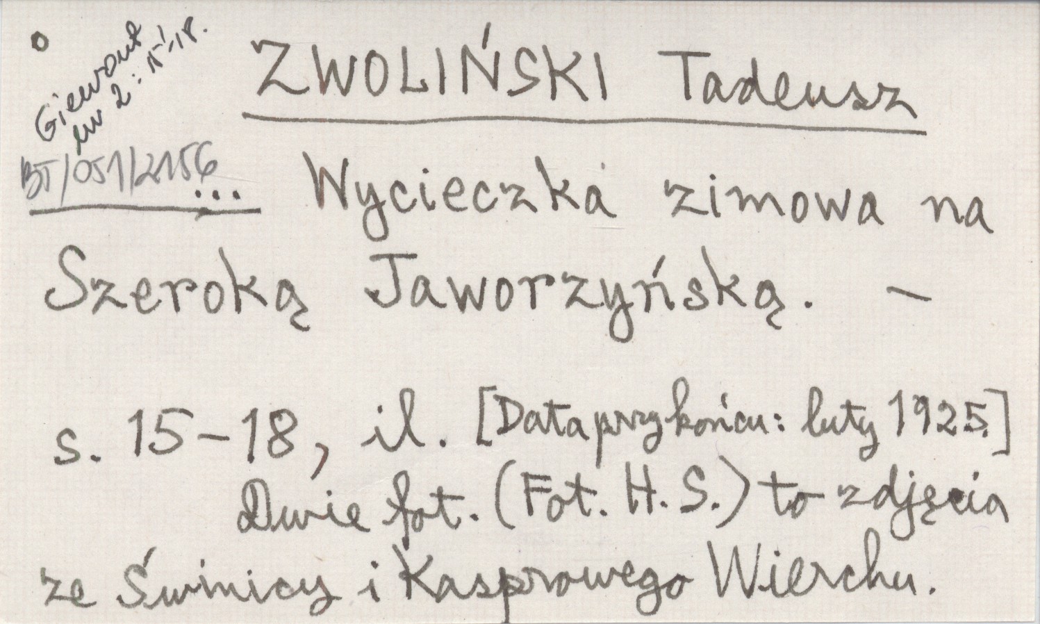 Giewont, Nr 2: 15-18, il. [Data przy końcu: luty 1925.] Dwie fotografie (Fot. H. S.) to zdjęcie ze Świnicy i Kasprowego Wierchu.