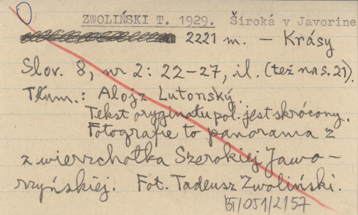 Krásy Slovenska, 8, nr 2: 22-27, il. (też na s. 21). Fotografie to panorama z wierzchołka Szerokiej Jaworzyńskiej. Tłum.: Alojz Lutonský. Tekst oryginału polskiego jest skrócony. Fot. Tadeusz Zwoliński.