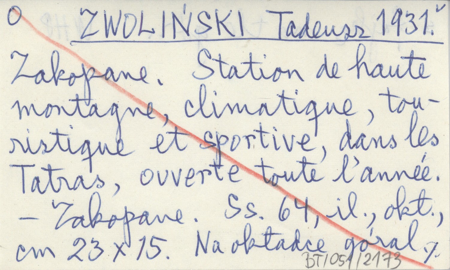 ZWOLIŃSKI Tadeusz 1931 Zakopane. Station de haute montagne, climatique, touristique et sportive, dans les Tatras, ouverte toute l'année.
