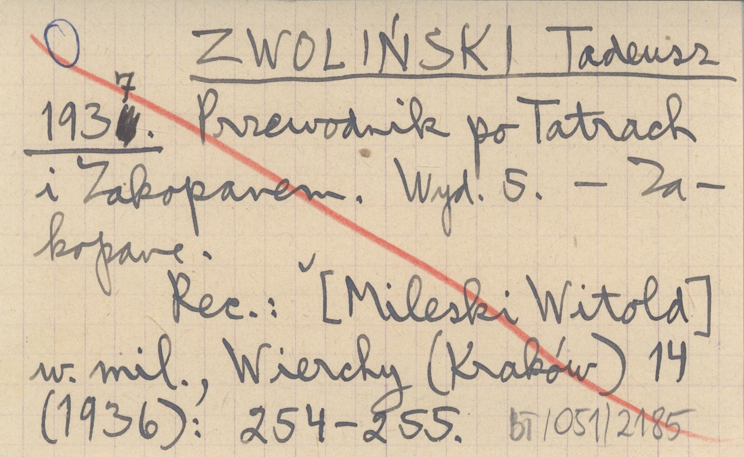 REC: [MILESKI Witold] w. mil., Wierchy (Kraków) 14 (1936): 254-255.