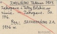 ZWOLIŃSKI Tadeusz 1946 Tatry i Zakopane w zimie. Krótki przewodnik narciarski [...].