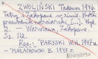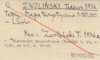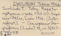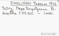 ZWOLIŃSKI Tadeusz 1936 a Zwoliński T.: Tatry.Mapa turystyczna w podz. 1:50 000. Książnica-Atlas, Lwów 1936. (Autoreferat).