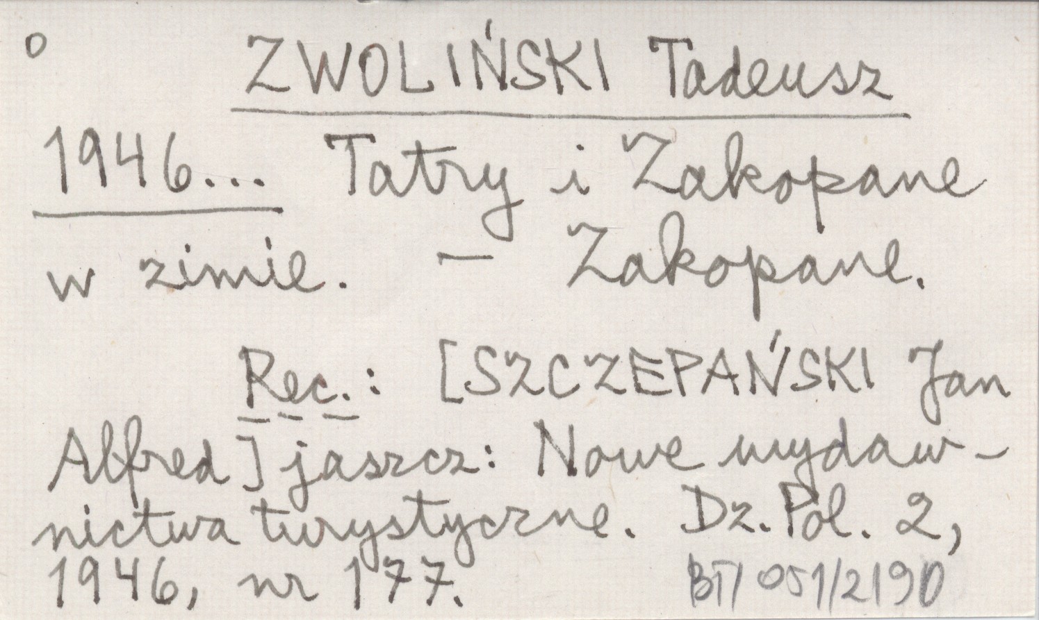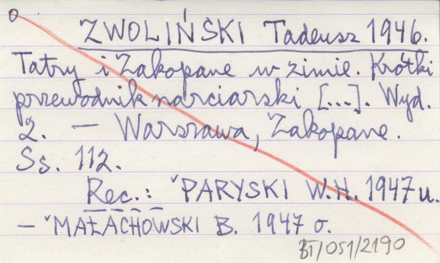 WYD: 2 Warszawa ; Zakopane ; , 112 s. REC: PARYSKI W. H. 1947 u ; MAŁACHOWSKI B. 1947 o ; [SZCZEPAŃSKI Jan Alfred] jaszcz: Nowe wydawnictwa turystyczne. Dziennik Polski 2, 1946, nr 177 ;