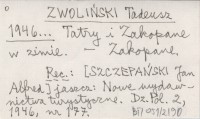 ZWOLIŃSKI Tadeusz 1946 Tatry i Zakopane w zimie. Krótki przewodnik narciarski [...].