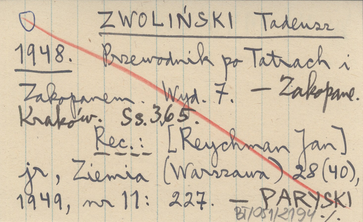 WYD: 7 Zakopane ; Kraków ; , 365 s. REC: [REYCHMAN Jan] jr, Ziemia (Warszawa) 28 (40), 1949, nr 11: 227 ; PARYSKI W. H. 1948 av ;