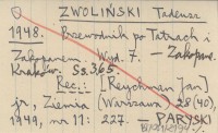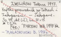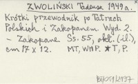 ZWOLIŃSKI Tadeusz 1949 a Krótki przewodnik po Tatrach Polskich i Zakopanem.