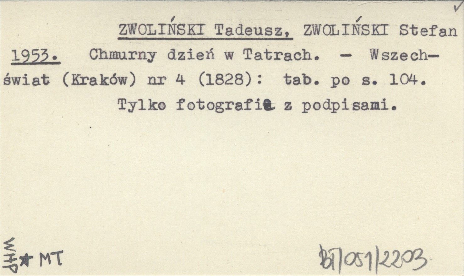 ZWOLIŃSKI Tadeusz ZWOLIŃSKI, Stefan. ; 1953 Chmurny dzień w Tatrach.
