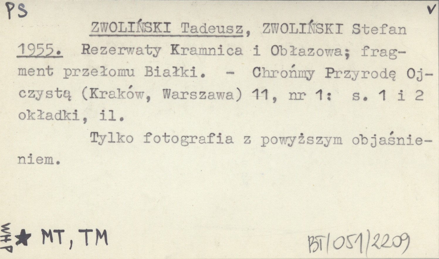 ZWOLIŃSKI Tadeusz ZWOLIŃSKI, Stefan. ; 1955 Rezerwaty Kramnica i Obłazowa ; fragment przełomu Białki.