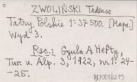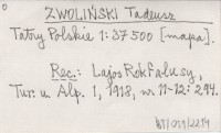 ZWOLIŃSKI Tadeusz Tatry Polskie 1:37 500 [mapa].