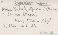ZWOLIŃSKI Tadeusz Mapa Podhala, Spisza i Orawy 1:200 000. [Mapa.]
