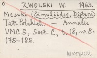 ZWOLSKI W. 1963 Meszki (Simuliidae, Diptera) Tatr Polskich.