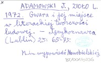 ADAMOWSKI J. ZIOŁO, L. ; 1972 Gwara i jej miejsce w literackiej twórczości ludowej.