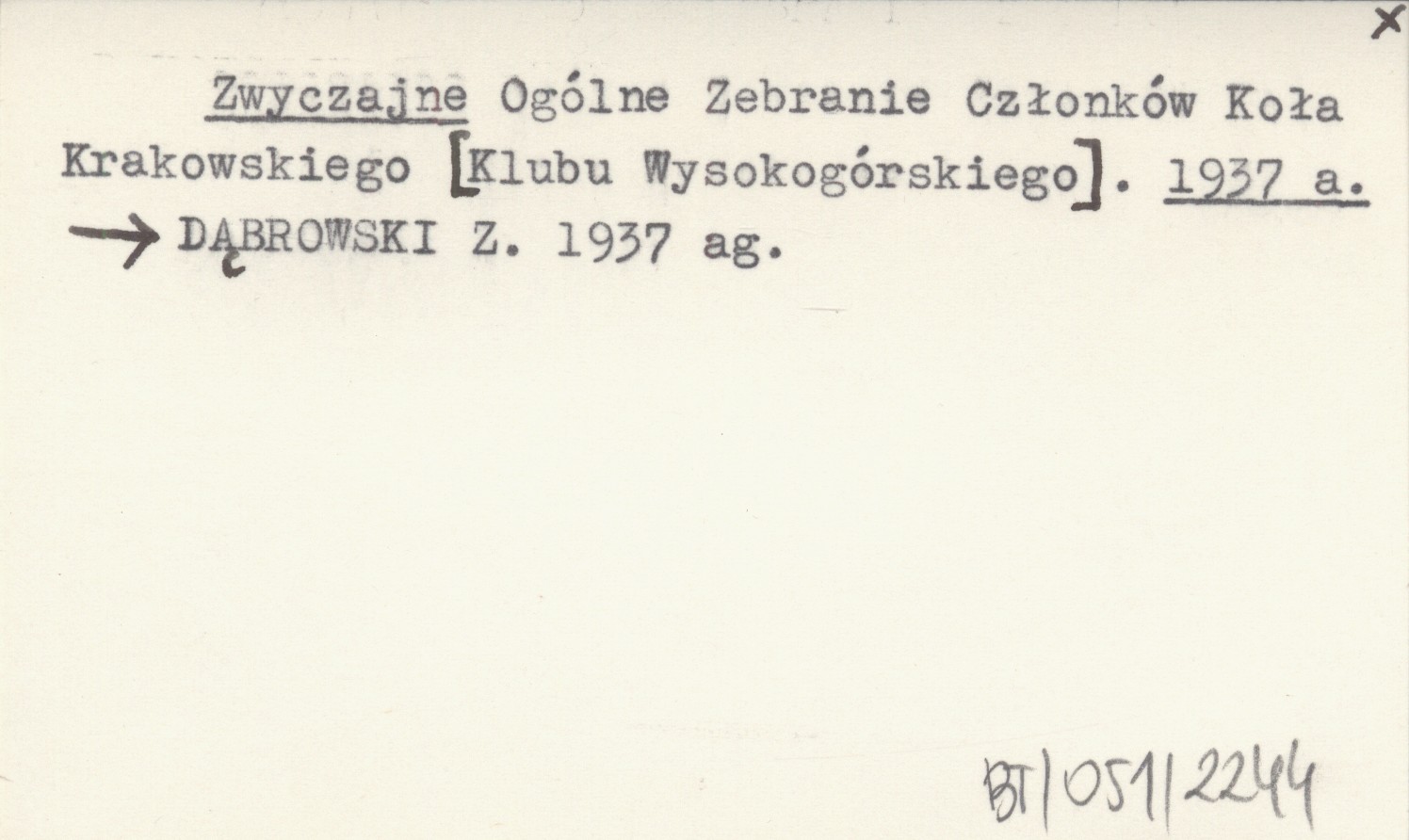 Zwyczajne Ogólne Zebranie Członków Koła Krakowskiego [Klubu Wysokogórskiego]. 1937 a