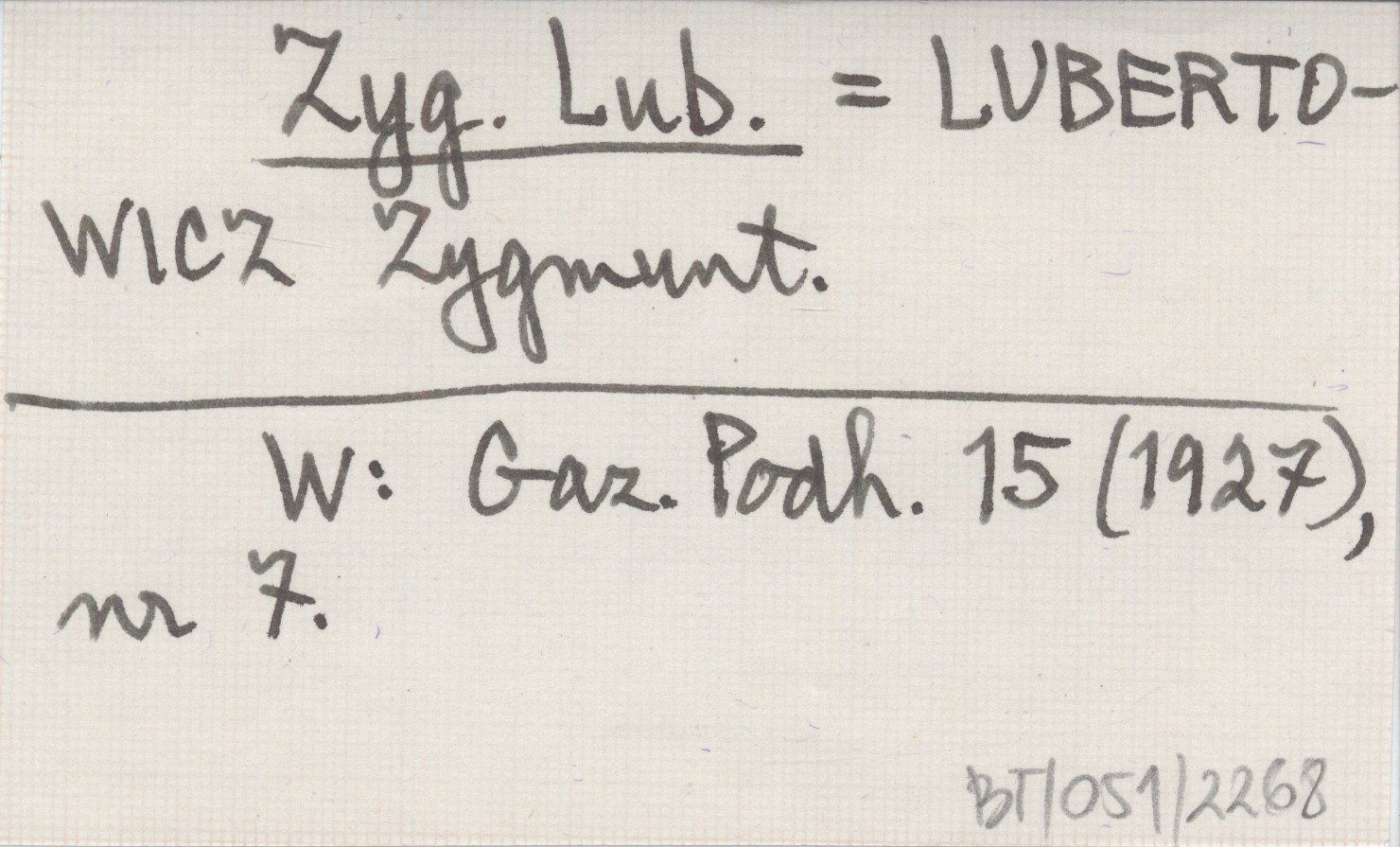 Zyg. Lub. LUBERTOWICZ Zygmunt Gazeta Podhalańska 15 (1927), nr 7.