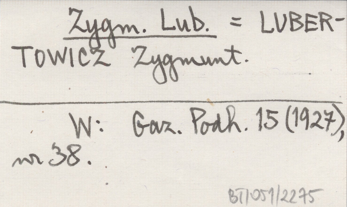 Zygm. Lub. LUBERTOWICZ Zygmunt Gazeta Podhalańska 15 (1927), nr 38.