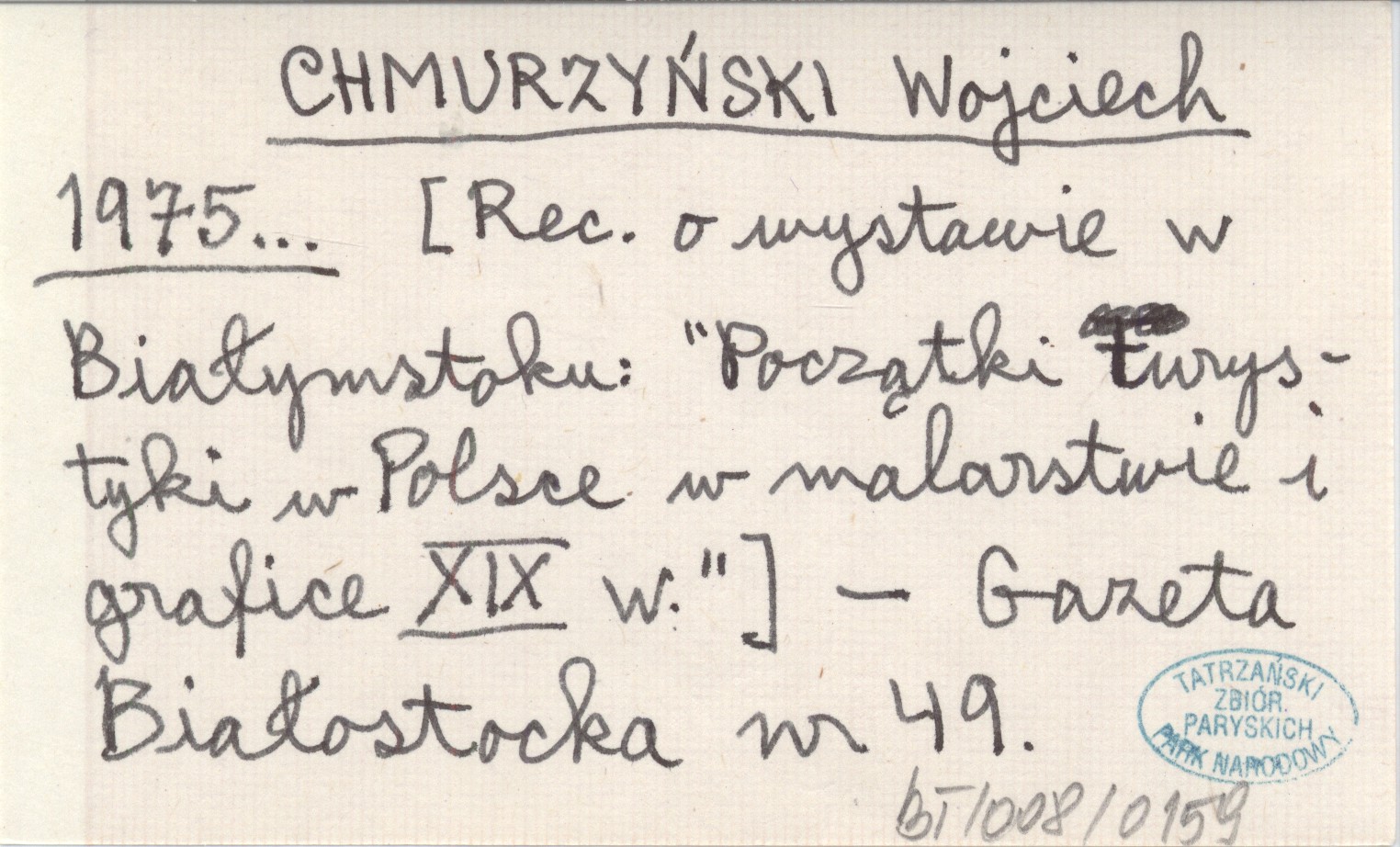 CHMURZYŃSKI Wojciech 1975... [Rec. o wystawie w Białymstoku: "Początki turystyki w Polsce w malarstwie i grafice XIX w.]