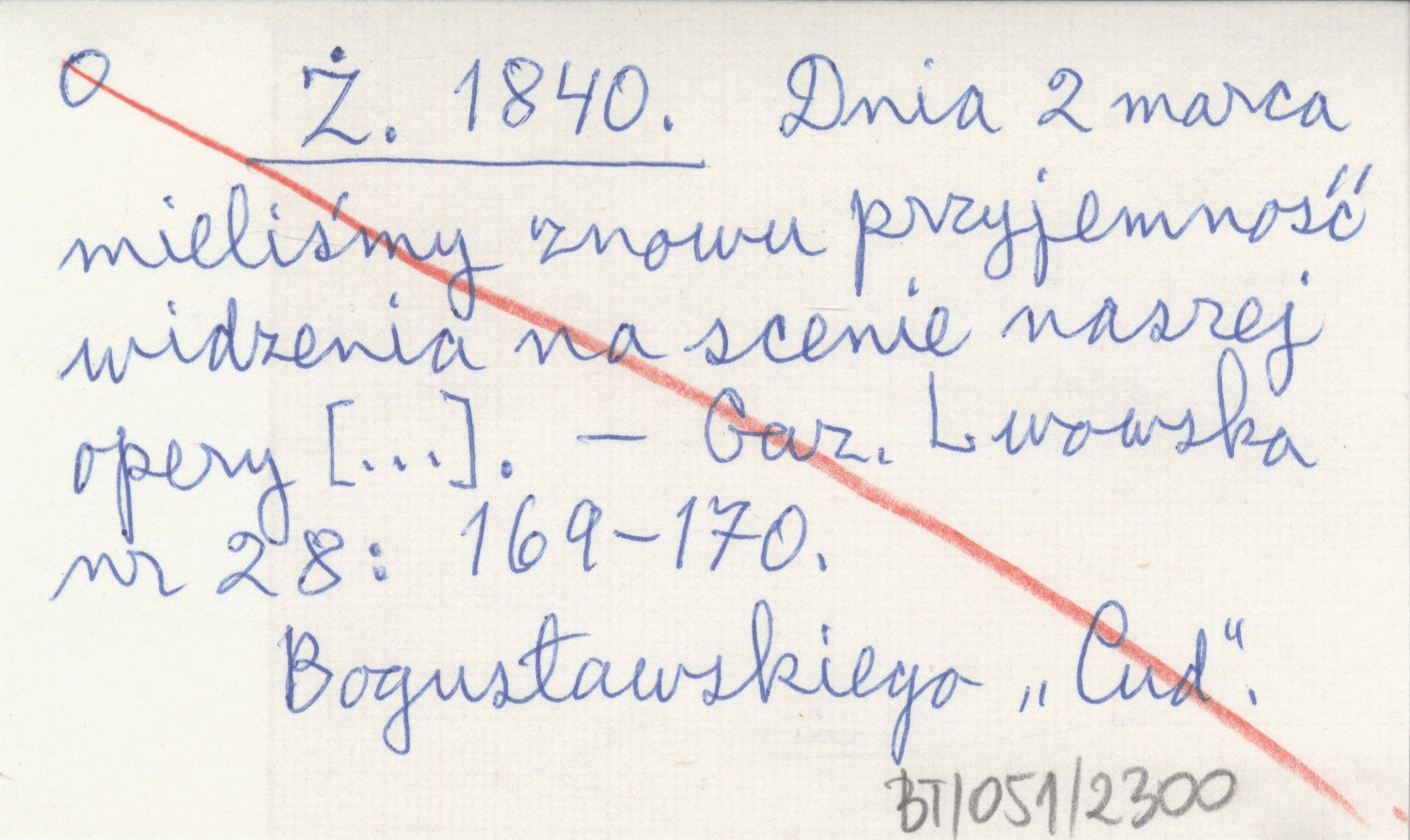 Ż. 1840 Dnia 2 marca mieliśmy znowu przyjemność widzenia na scenie naszej opery [...].