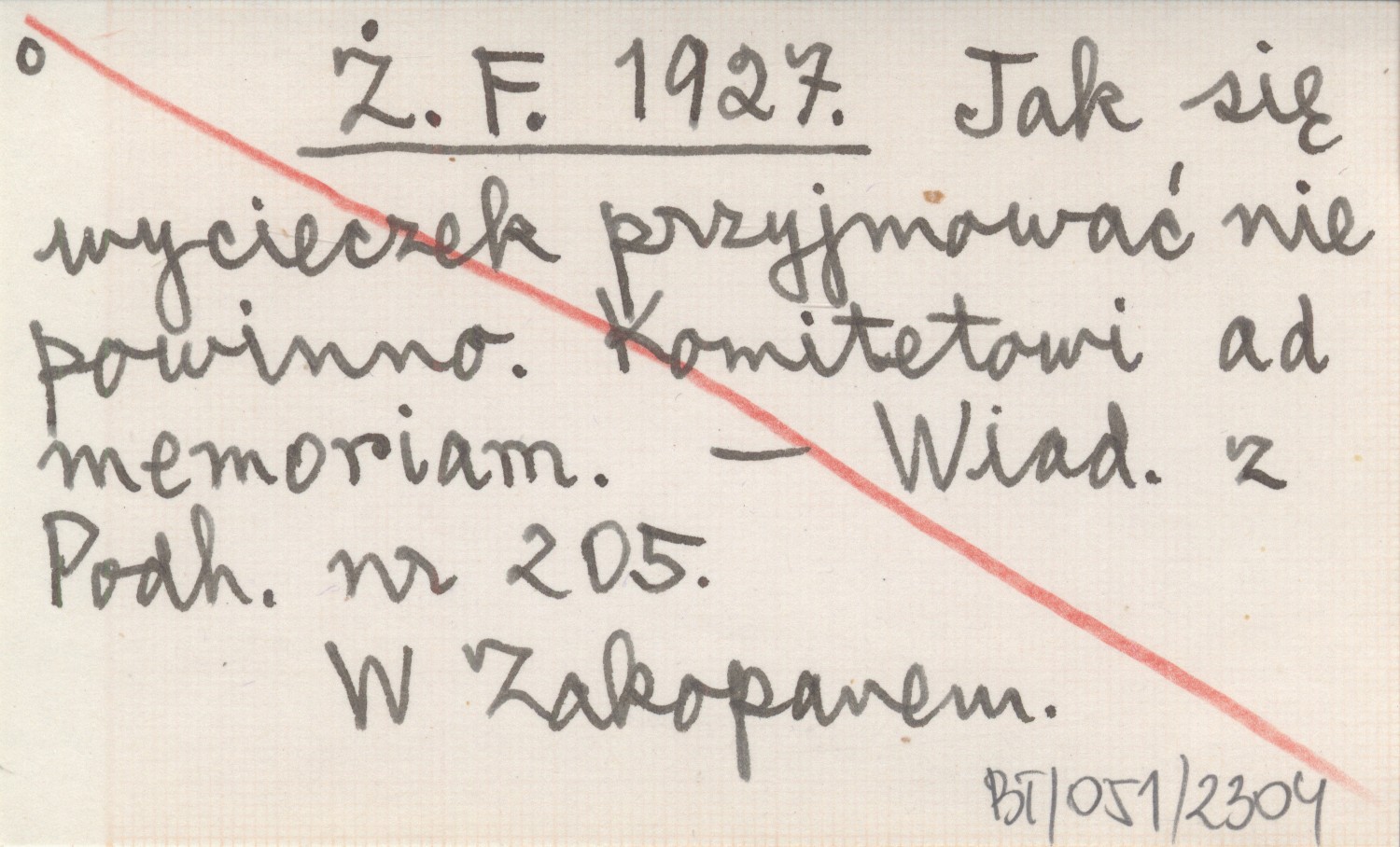 Ż. F. 1927 Jak się wycieczek przyjmować nie powinno. Komitetowi ad memoriam.