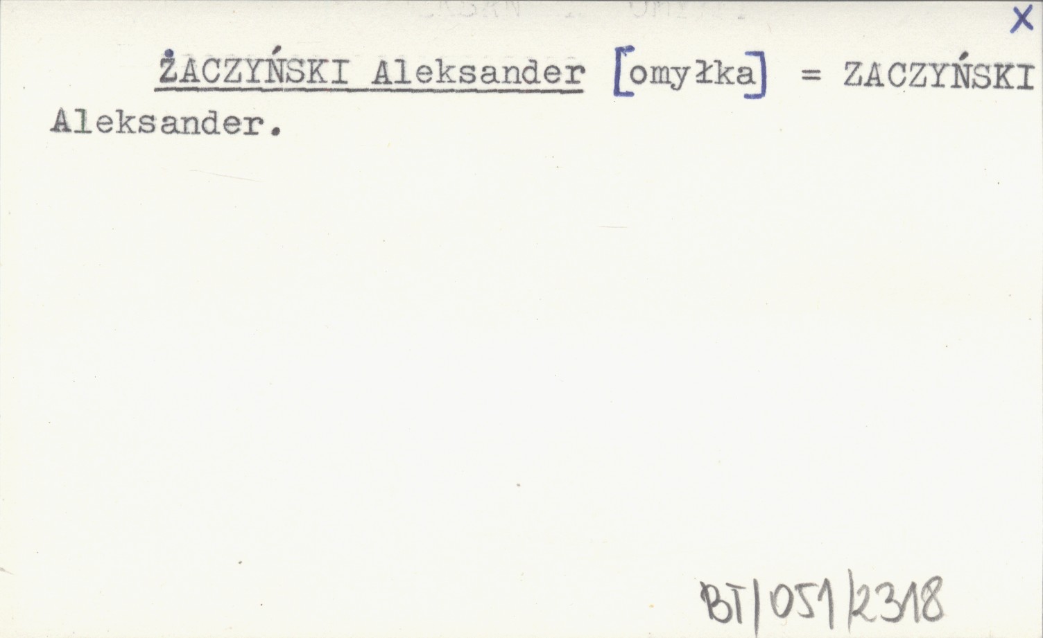 ŻACZYŃSKI Aleksander [omyłka] ZACZYŃSKI Aleksander