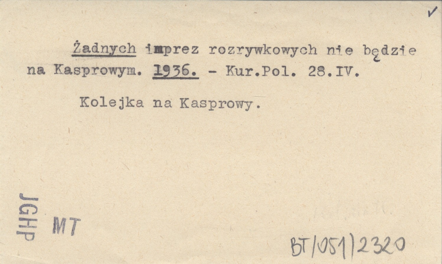 Żadnych imprez rozrywkowych nie będzie na Kasprowym. 1936