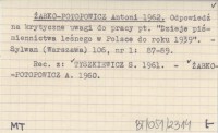 ŻABKO-POTOPOWICZ Antoni 1962 Odpowiedź na krytyczne uwagi do pracy pt. "Dzieje piśmiennictwa leśnego w Polsce do roku 1939".
