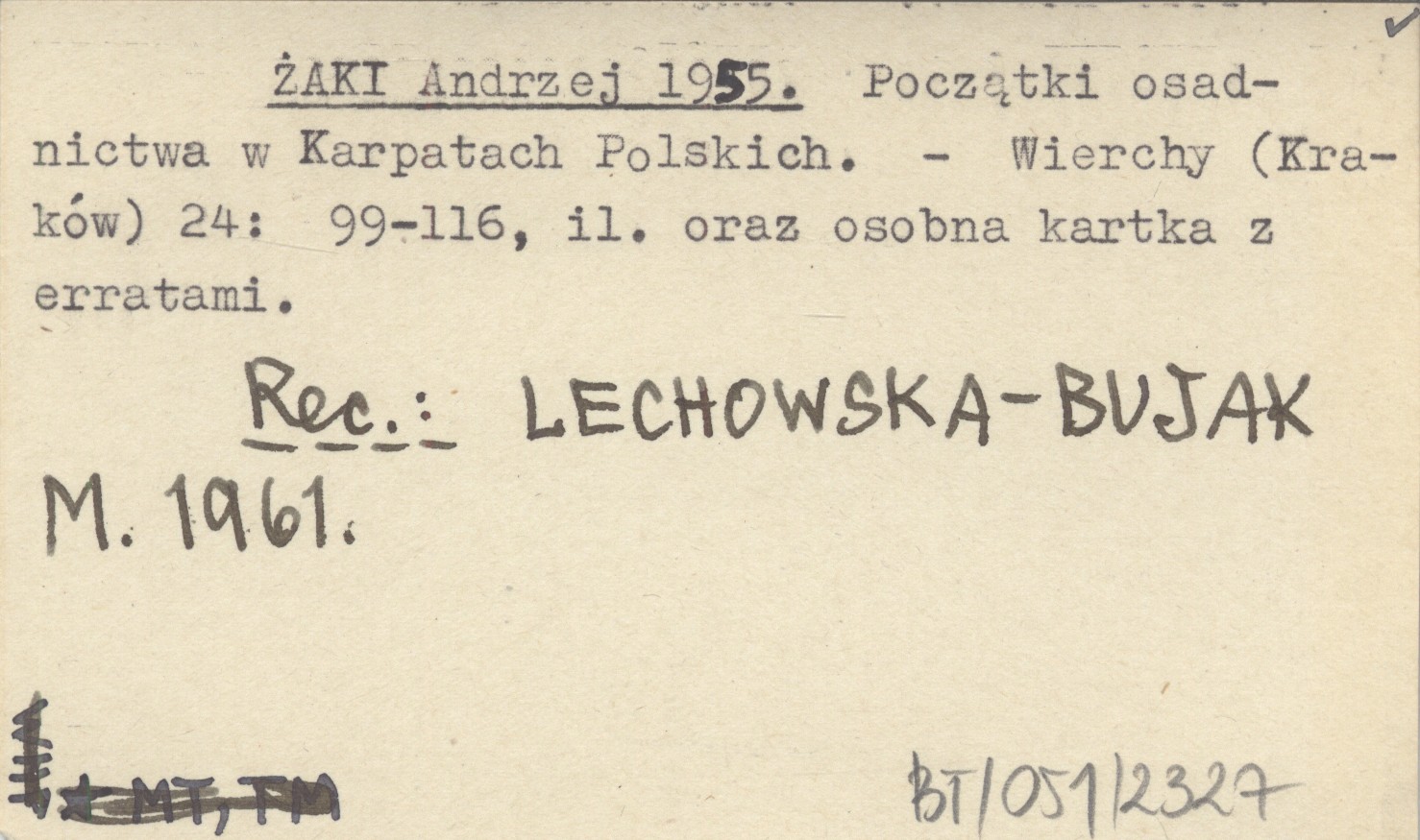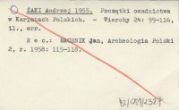 ŻAKI Andrzej 1955 Początki osadnictwa w Karpatach Polskich.