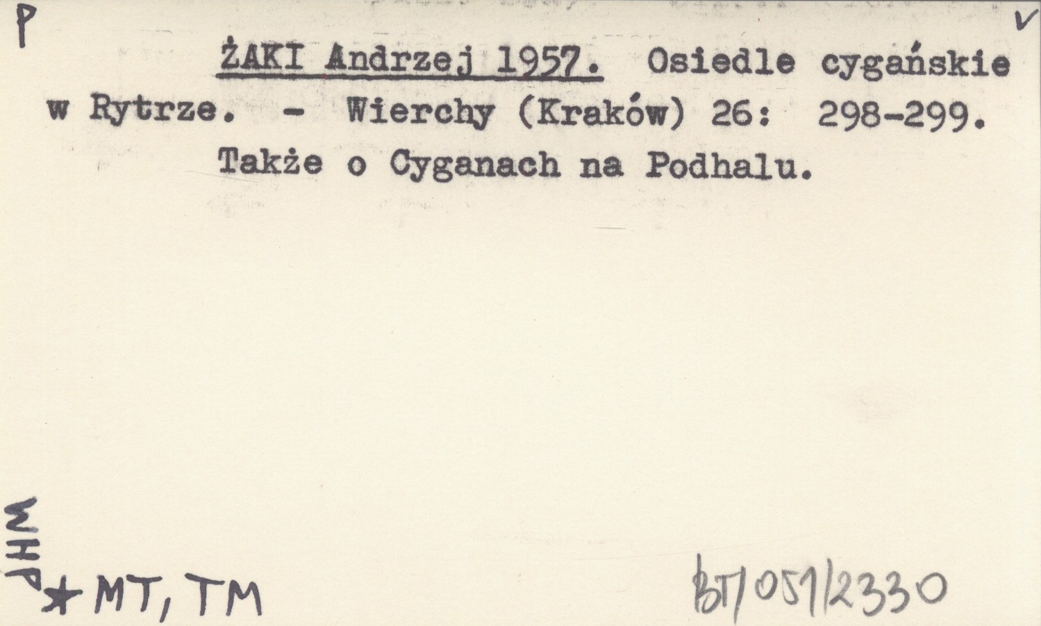 Wierchy (Kraków) , 26: 298-299. Także o Cyganach na Podhalu.
