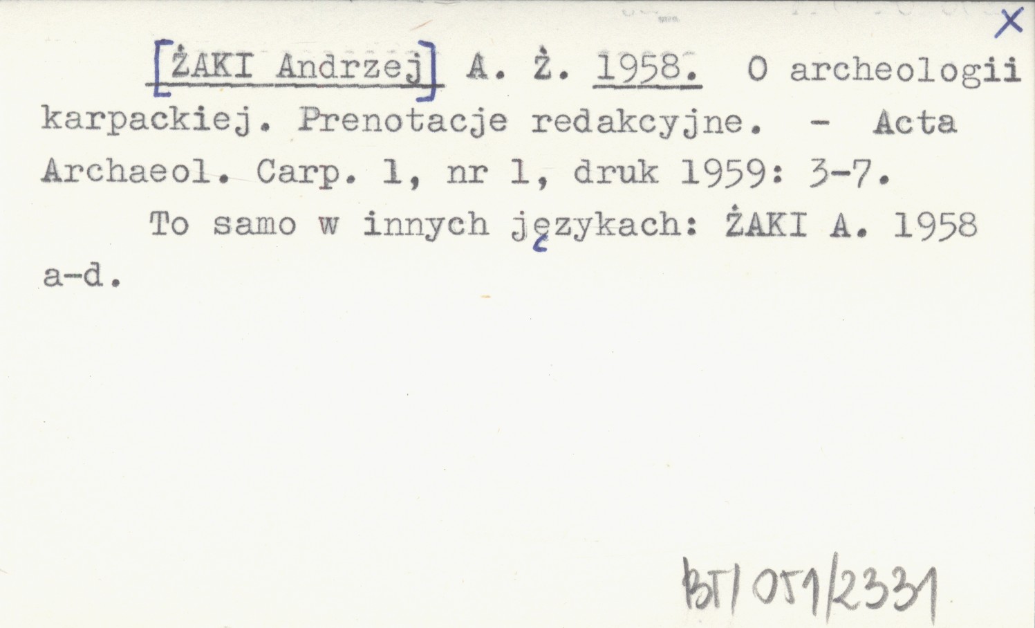 A. Ż. [ŻAKI Andrzej] 1958 O archeologii karpackiej. Prenotacje redakcyjne.