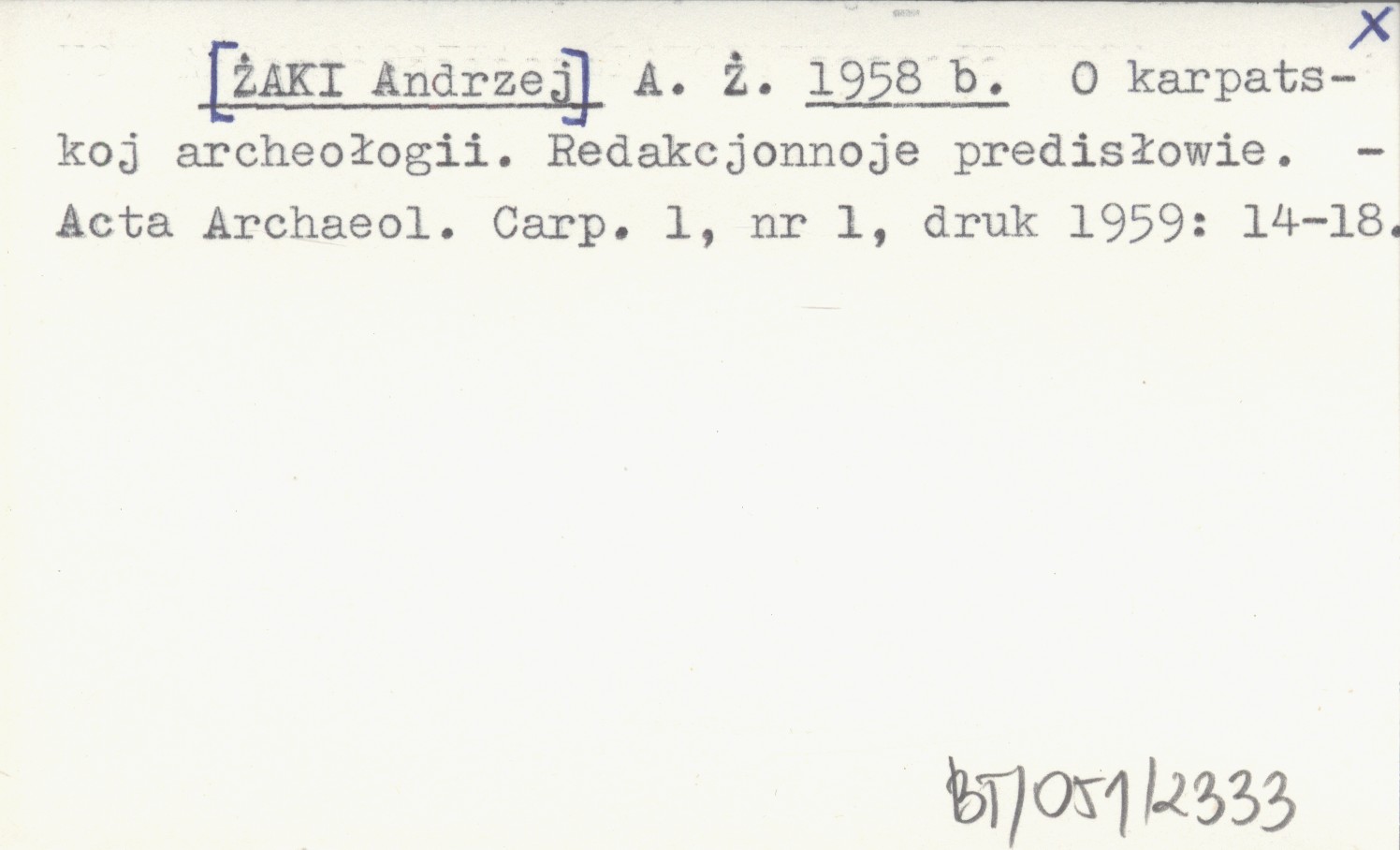 A. Ż. [ŻAKI Andrzej] 1958 b O karpatskoj archeołogii. Redakcjonnoje predisłowie.