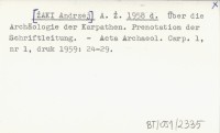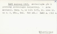 A. Ż. [ŻAKI Andrzej] 1958 d Über die Archäologie der Karpathen. Prenotation der Schriftleitung.