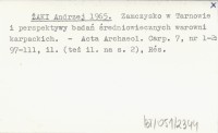 ŻAKI Andrzej 1965 Zamczysko w Tarnowie i perspektywy badań średniowiecznych warowni karpackich.