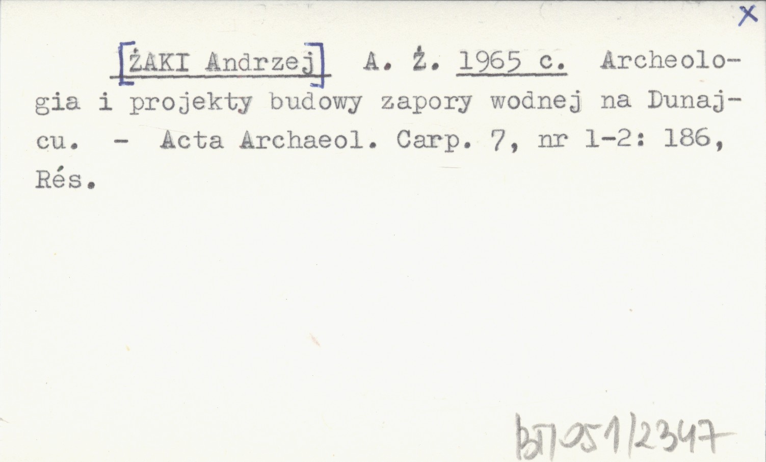 A. Ż. [ŻAKI Andrzej] 1965 c Archeologia i projekty budowy zapory wodnej na Dunajcu.
