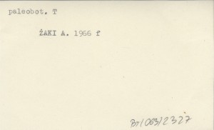 ŻAKI Andrzej 1966 f [Rec. z:] Eduard Krippel, Postglaciálny vývoj lesov Tatranského národného parku. "Biologické Prace" 1963.