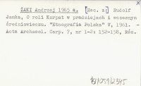 ŻAKI Andrzej 1965 a [Rec. z: ] Rudolf Jamka, O roli Karpat w pradziejach i wczesnym średniowieczu. "Etnografia Polska" V, 1961.