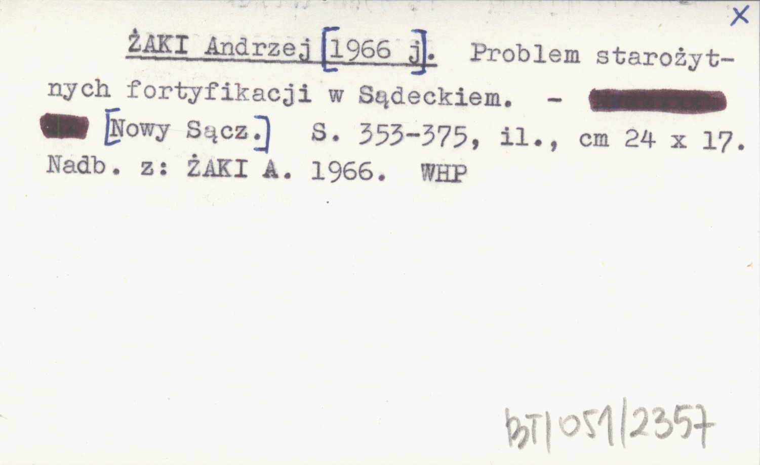 ŻAKI Andrzej [1966 j] Problem starożytnych fortyfikacji w Sądeckiem.