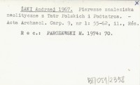 ŻAKI Andrzej 1967 Pierwsze znaleziska neolityczne z Tatr Polskich i Podtatrza.