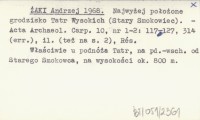 ŻAKI Andrzej 1968 Najwyżej położone grodzisko Tatr Wysokich (Stary Smokowiec).