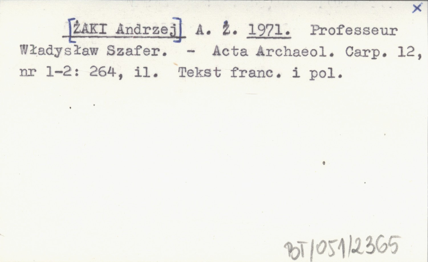Acta Archeologica Carpathica, 12, nr 1-2: 264, il. Tekst francuski i polski.