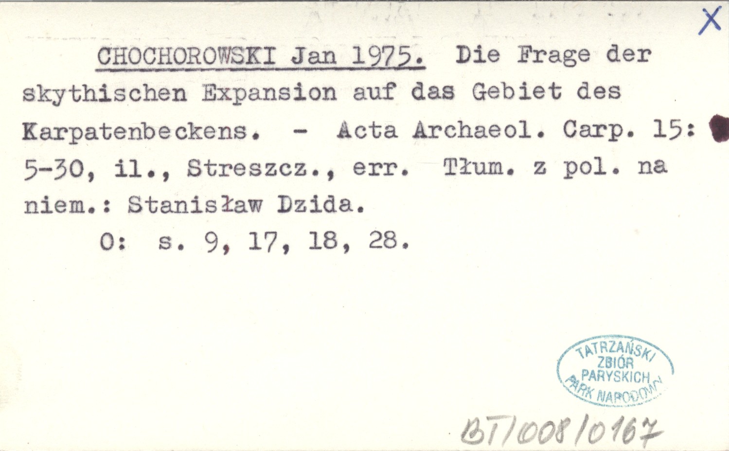 CHOCHOROWSKI Jan 1975 Die Frage der skythischen Expansion auf das Gebiet des Karpatenbeckens.