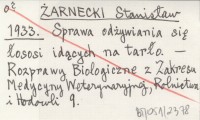 ŻARNECKI Stanisław 1933 Sprawa odżywiania się łososi idących na tarło.
