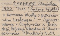 ŻARNECKI Stanisław 1950 Troć (Salmo trutta) z dorzecza Wisły z pierścieniem tarłowym.