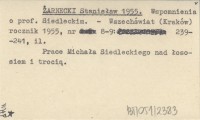 ŻARNECKI Stanisław 1955 Wspomnienia o prof. Siedleckim.