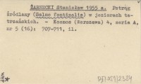 ŻARNECKI Stanisław 1955 a Pstrąg źródlany (Salmo fontinalis) w jeziorach tatrzańskich.