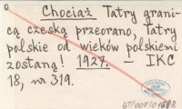 Chociaż Tatry granicą czeską przeorano, Tatry polskie od wieków polskiemi zostaną! 1927