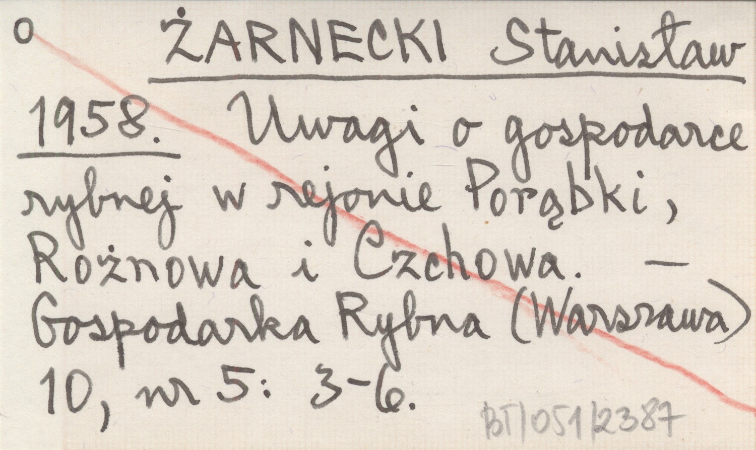 ŻARNECKI Stanisław 1958 Uwagi o gospodarce rybnej w rejonie Porąbki, Rożnowa i Czchowa.