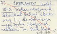ŻEBRAWSKI Teofil 1862 Wykaz zdrojowisk lekarskich Galicyi i Bukowiny [...] dla objaśnienia mapy tychże zdrojowisk, nakładem Tow. Nauk. Krak. wydanej.