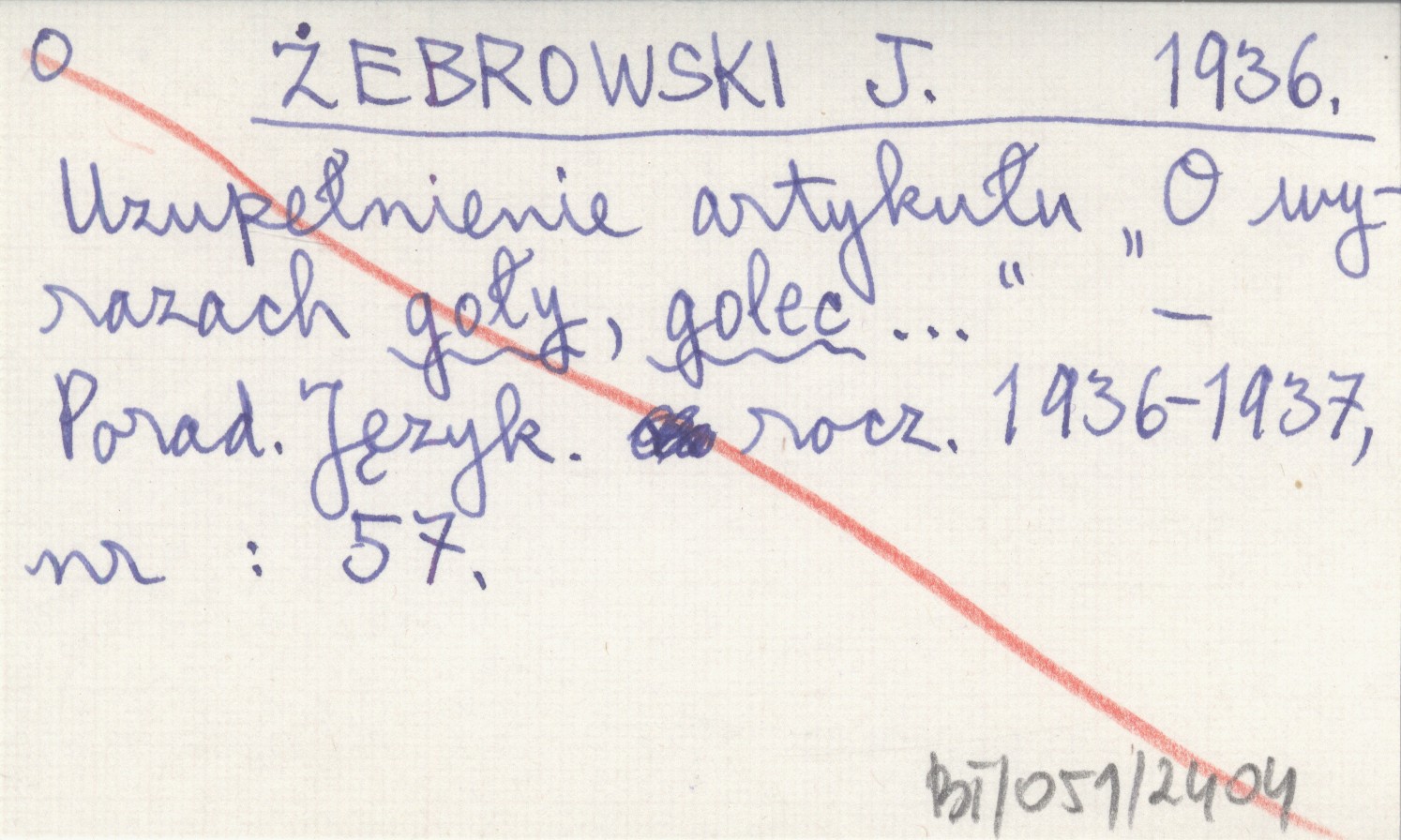 ŻEBROWSKI J. 1936 Uzupełnienie artykułu "O wyrazach goły, golec...".