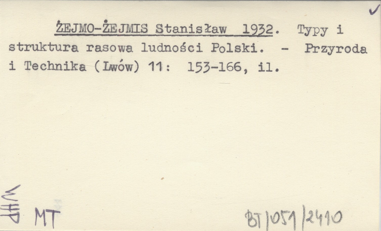 ŻEJMO-ŻEJMIS Stanisław 1932 Typy i struktura rasowa ludności Polski.