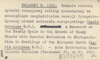 ŻELAWSKI W. 1956 Badania rocznej rytmiki rozwojowej rośliny drzewiastej ze szczególnym uwzględnieniem reakcji fotoperiodycznej siewek modrzewia europejskiego (Larix europaea D.C.). A Research on the Yearly Cycle in the Growth of Woody Plants with Special Reference to Photoperiodism in Seedlings of the European Larch (Larix europaea D.C.).
