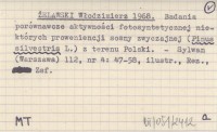 ŻELAWSKI Włodzimierz 1968 Badania porównawcze aktywności fotosyntetycznej niektórych proweniencji sosny zwyczajnej (Pinus silvestris L.) z terenu Polski.